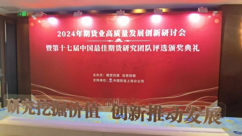 2024年11月27日上午,期貨日報社聯合證券時報社共同主辦的“2024年期貨業高質量發展創新研討會暨第十七屆中國最佳期貨研究團隊評選頒獎典禮”在南京舉行。