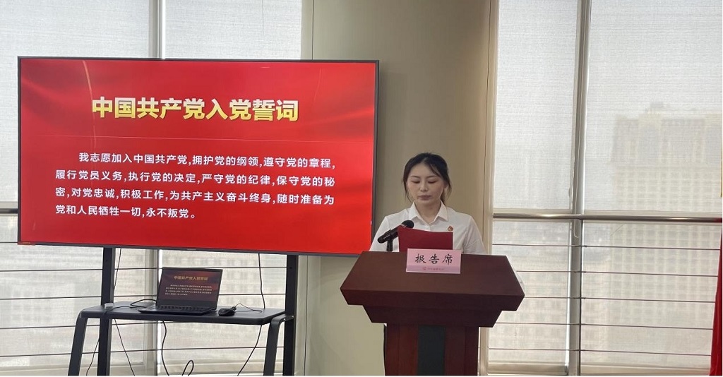 最后,公司全體黨員整齊肅立,面向鮮紅的中國共產黨黨旗,重溫入黨誓詞。鏗鏘有力的誓言響徹會場,字字千鈞的承諾凝聚著河北國富投資全體黨員對黨的忠誠與擔當,激勵著大家以初心為帆、以使命為舵,在新時代新征程中踔厲奮發、勇毅前行,以實際行動為黨旗增輝、為黨徽添彩。