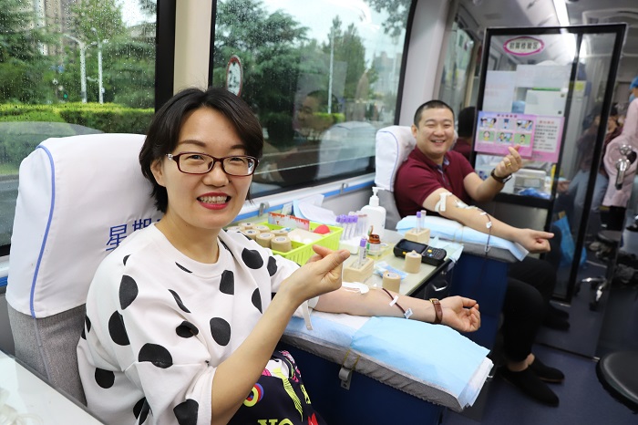 這些獻血員工當中,有的是多次參加無償獻血的老同志,也有剛參加工作不久的新員工,其中不乏巾幗不讓須眉的女同志。“這是我第一次獻血,在國慶節到來之際能奉獻自己的一份愛心,感覺很有意義。”國富投資集團黨群工作部經理李杰自告奮勇第一個走上前。員工李帥早早地就過來排隊,這已經是他第三次獻血了。“五年前在博物館廣場看到獻血車,就上去獻了第一次血,后來就停不下來了。”李帥告訴記者。